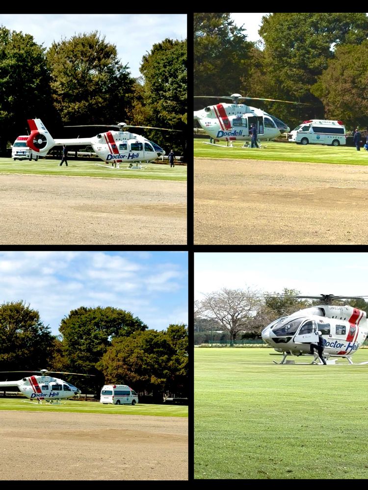 よく行く公園に突然現れたDoctorヘリ🚁救急車も程なく到着🚑🚨