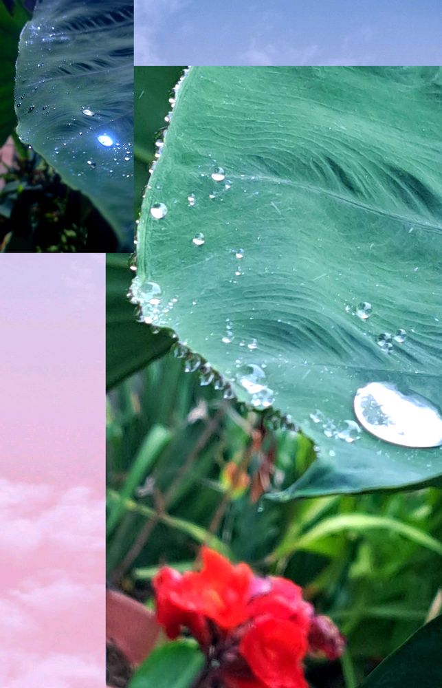 動画じゃないけど葉っぱの縁から溢れ出る雨が💧✨️⤴️