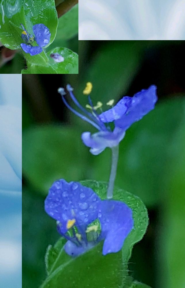 ②枚目…「マルバツユクサ💙」昨年から咲いてくれてるプレゼントのお花(ギボウシの鉢に同居して京都へ📦)✨️⤴️