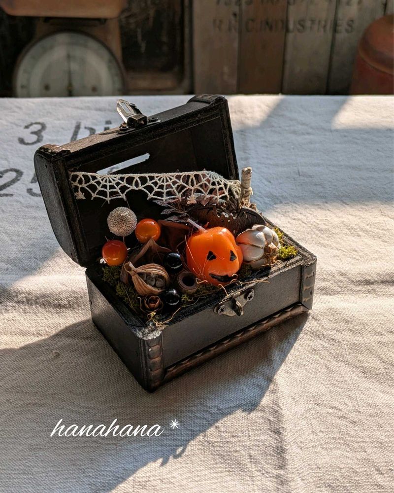 Salut!で出会ったこのBOX🧰見た瞬間にハロウィンアレンジを作ってみたくなりました!開けたり閉めたり…出来るのがポイント☝️です☺️
