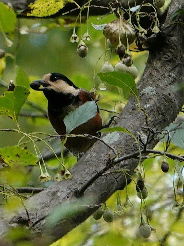 双眼鏡を持ち歩いているのですが~やはり望遠のカメラですネ…エゴノキの実を咥えているのは、確認してわかりました‥👌🎶
