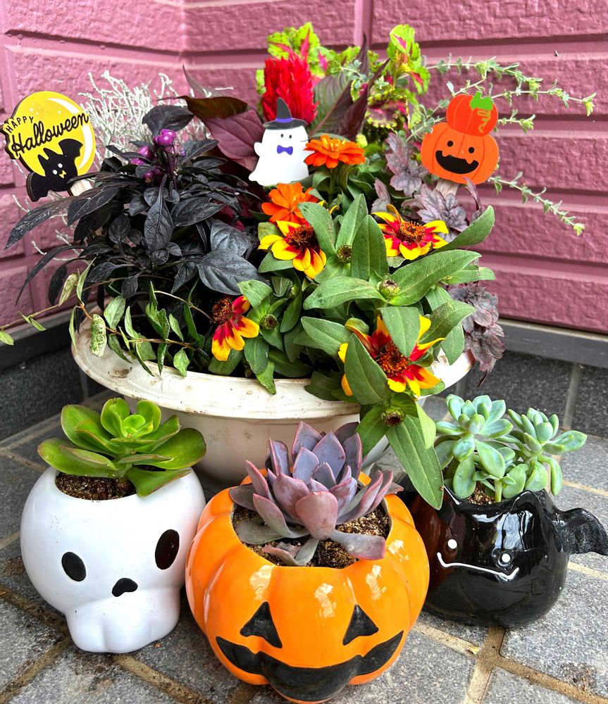 毎年作りたくなる、ハロウィン風寄植え(なるべく低予算で😅)