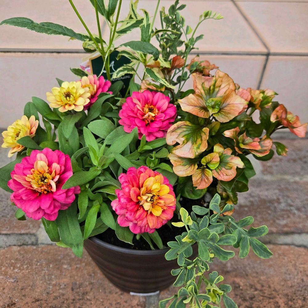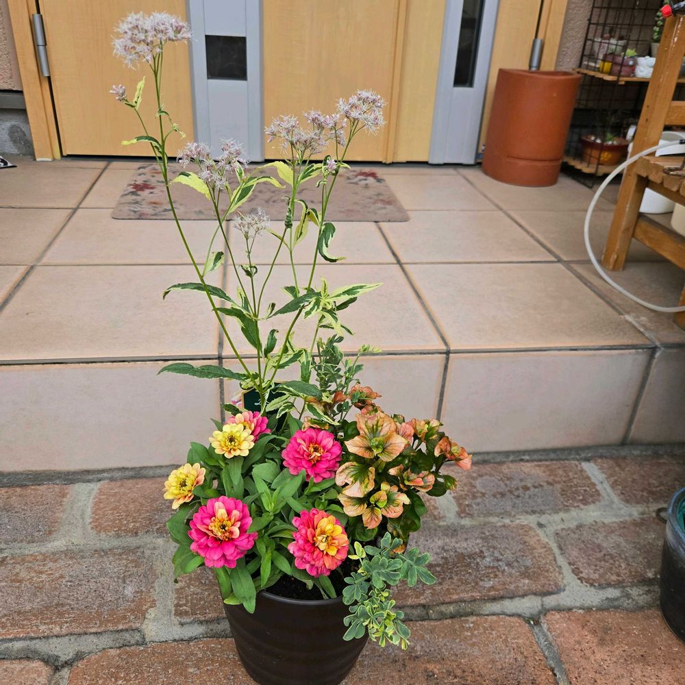 流行りに乗っかれた🙌寄せ植え体験で、ジュニアンスダブルとアルテルナンテラファニードレスの寄せ植え✨可愛い😍