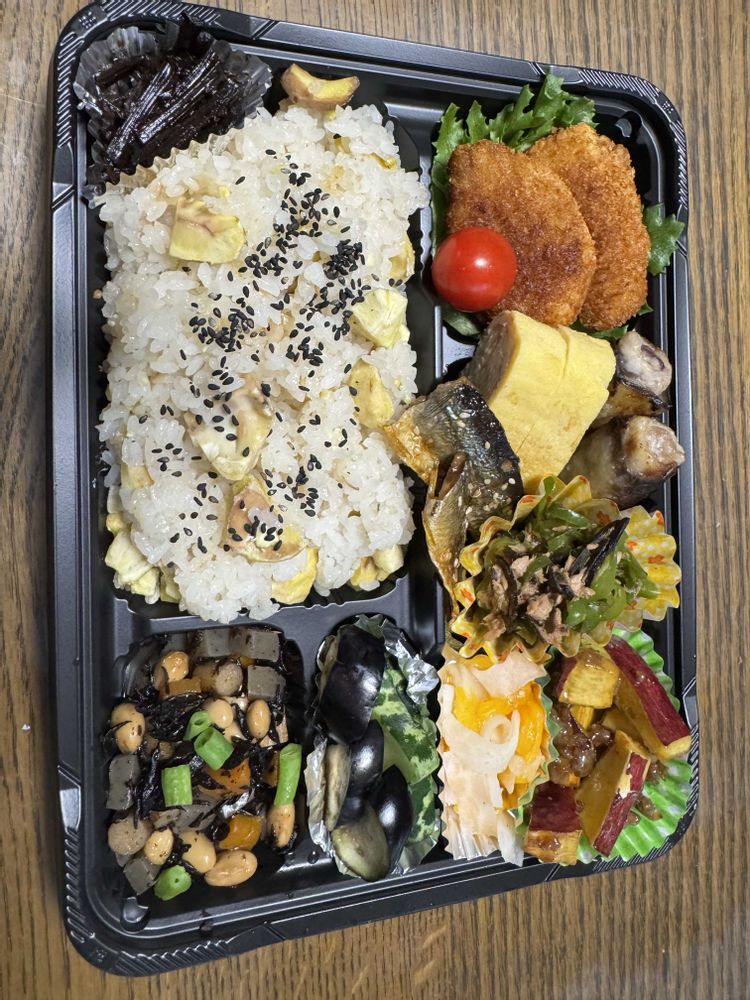 秋の味覚がたっくさんの美味しそうなお弁当ですね。いつもおかずが豊富ですね〜💕💕