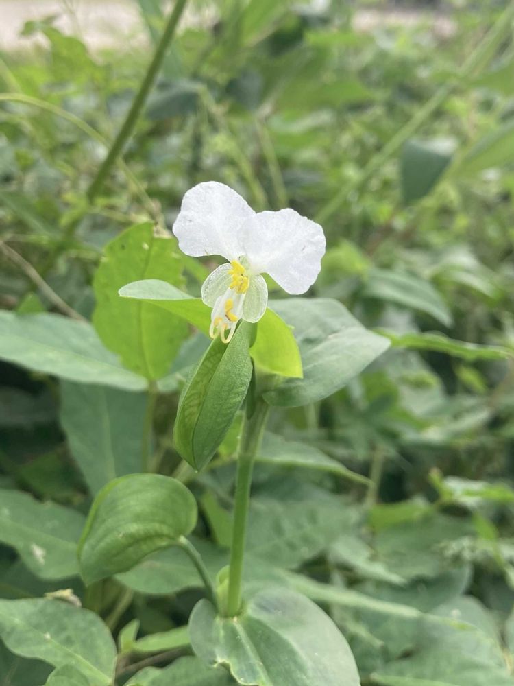 側には「ムラサキツユクサ」も咲いていたから、白花の変種かもしれない。