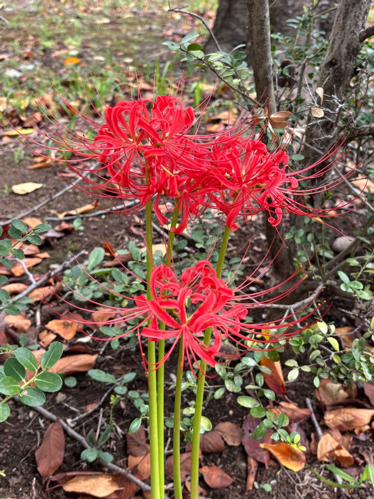 お寺では、萩(ハギ)や曼珠沙華(マンジュシャゲ)が咲き、メタセコイアが色付き始めていました。