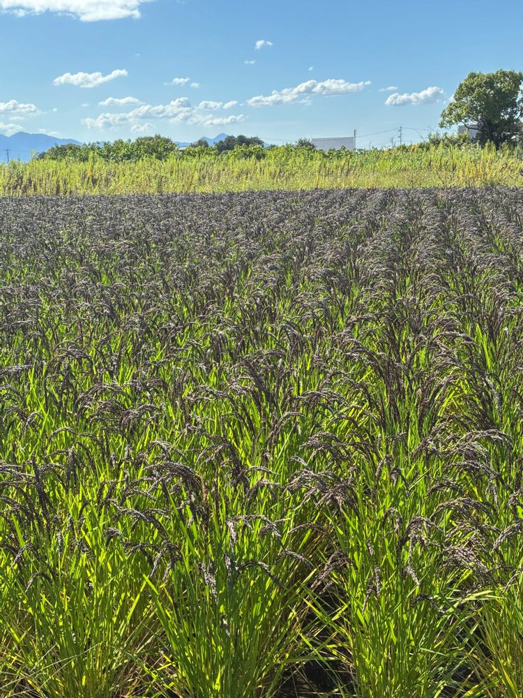 箸墓古墳の麓の田んぼでは、一部で古代米が植えられているようです🌾🖤🌾