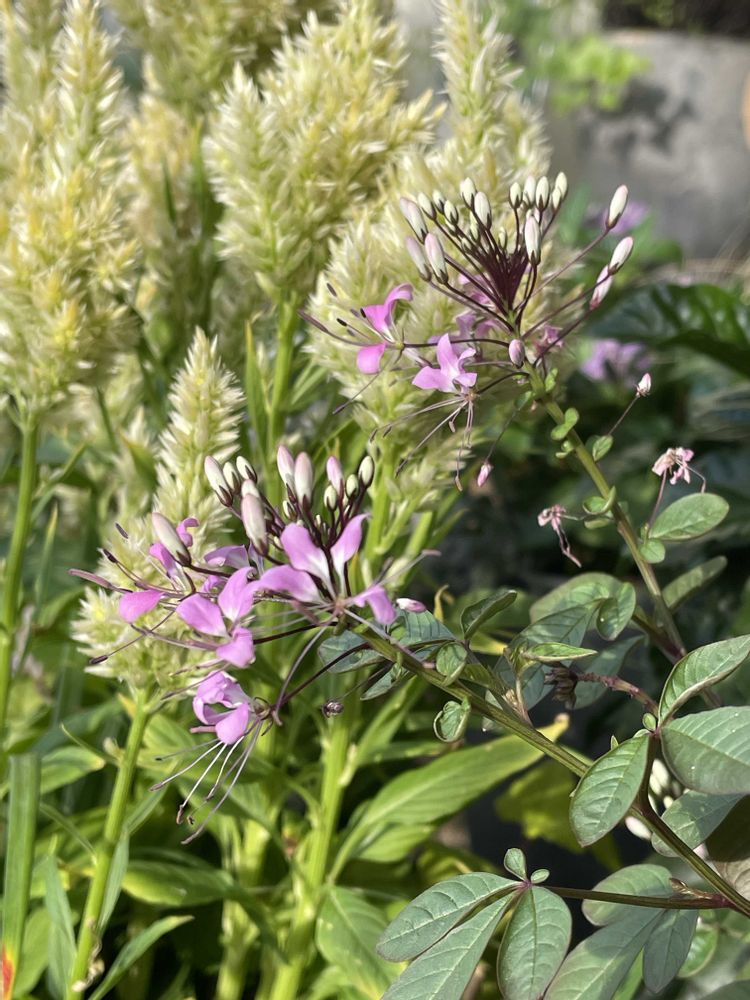 ジニアと一緒に植えた、クレオメハミングバードが咲いてきましたよ〜☺️💕