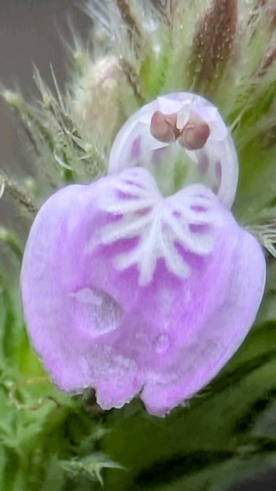昨日投稿したハグロソウと同じくニ唇形だけれど、こちらは反転しないで、下唇の先の方が3裂⸜⸝⸜⸝⸜⸝ 蜜標は白い模様、これは肋骨?👀