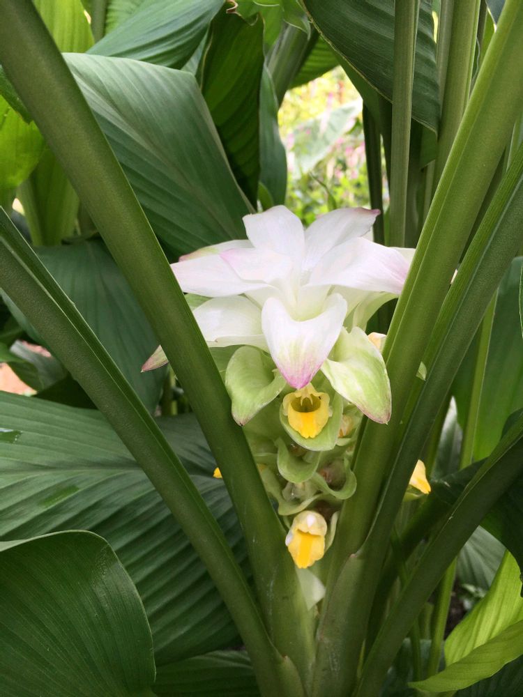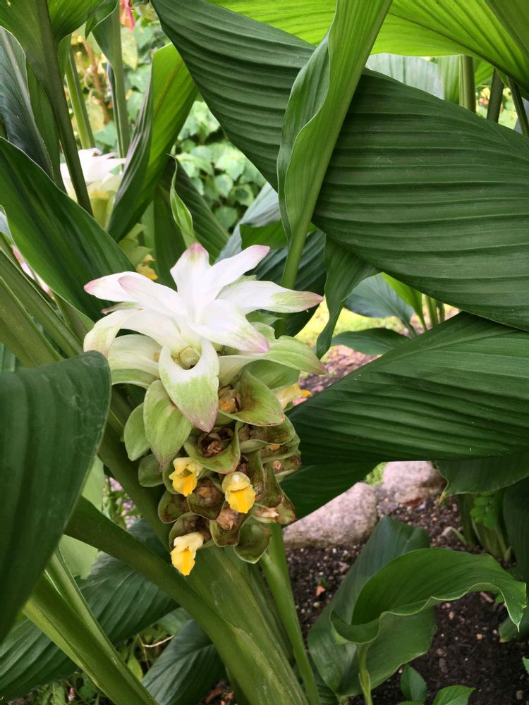 ウコンは私も昨年初めて出会いました。白い部分は苞葉と言ってお花ではなく、下の黄色いのがお花らしいです🌼