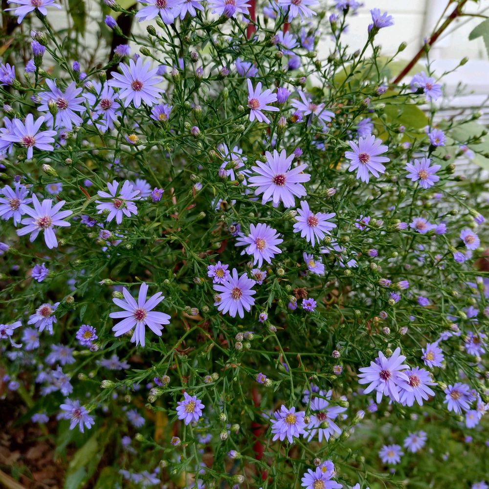 アスターリトルカーロウ💜💜💜ずーっと前に買ってバラ🌹の足元に植えて毎年細々と花が咲いてたのに、昨年あたりから、急にモリモリに〜そうだね〜ミンちゃんの好きなブルー紫の色だよね〜😉💜💙💜💙💜