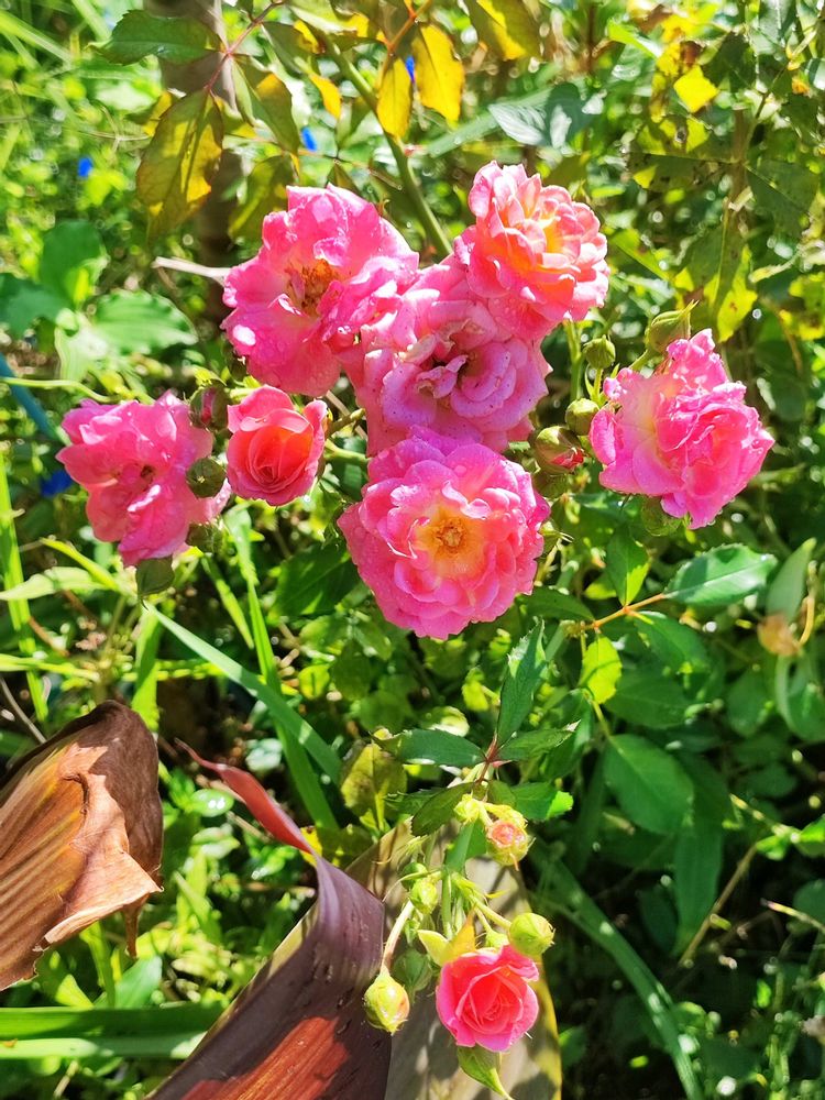 ミニバラ スイートドリフトのブーケが咲きました。強いバラなんですが、やっぱ古枝はあんまり花が出なくなるようで、若いシュートの所だけ咲いてます。冬剪定が甘かったので春夏はあまり咲かず…今年の冬はしっかり古枝は撤去しようと思います。