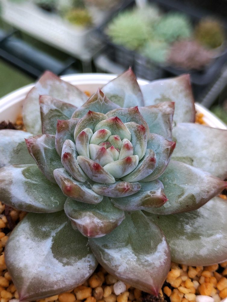 頭のほう やっとここまでに🥰ギュッとしてる。葉挿しのほうがスイートミントらしい…増えて嬉しい🤭