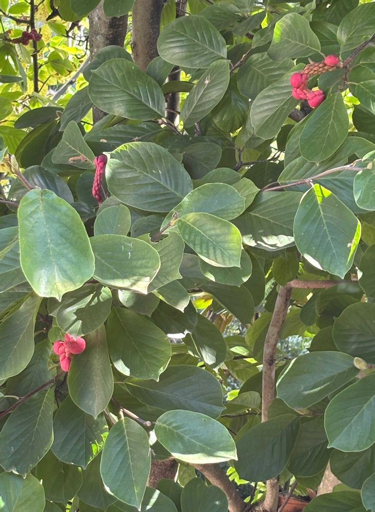 タイサンボクの実、モフモフの白いのはみたことあるけど、あれも赤くなるんだね!