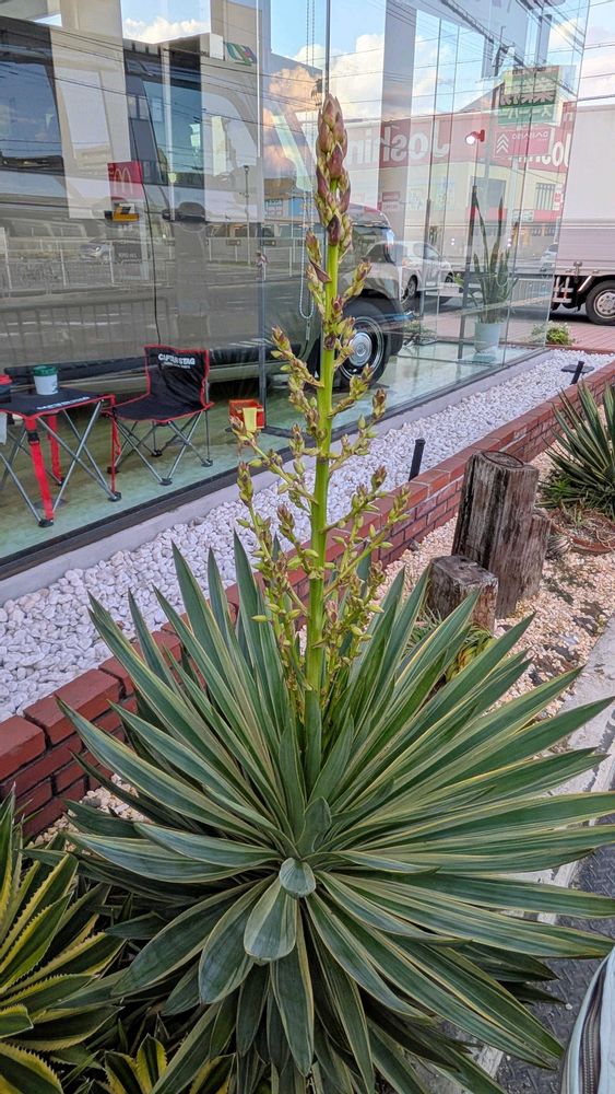 私はこの植物🪴がユッカというのを初めて知りましたので、この子が白い🤍🤍🤍お花をつけてるところを私は見てみたいです〜🌿🤍😊