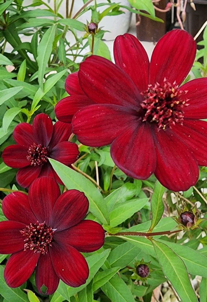 チョコレート秋桜赤にも真っ赤のもあれば、暗い赤も有り今が一番綺麗に咲いてます。