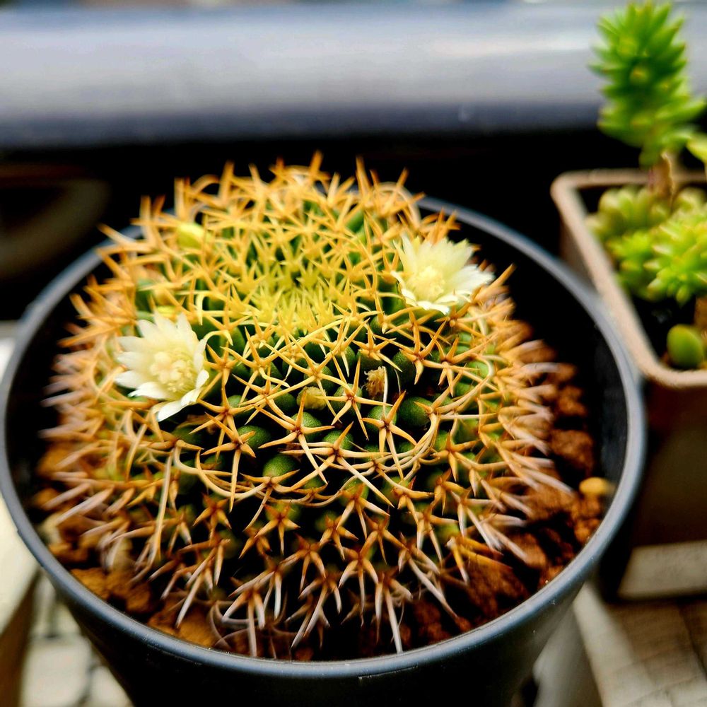 緑のボディ💚に黄色い短い棘💛そして白い花🤍