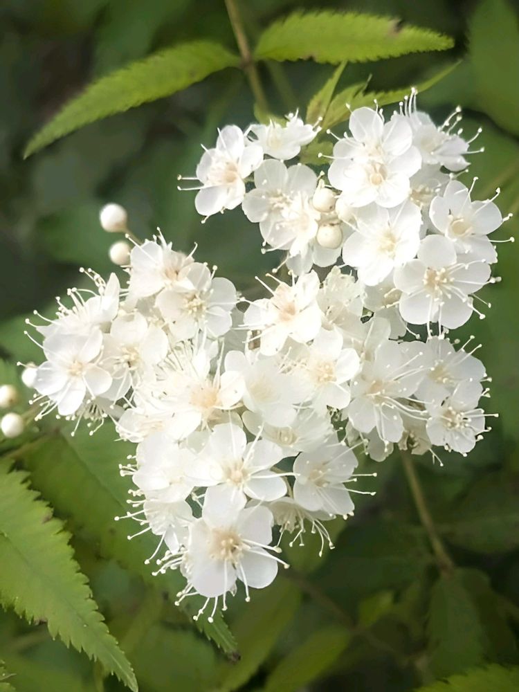 ナナカマドは赤い実を付け 紅葉していきますが ニワナナカマドは常緑樹で実もなく紅葉もしません。お花は美しく蕊がいっぱいで大好きなお花です✨🤍🌿