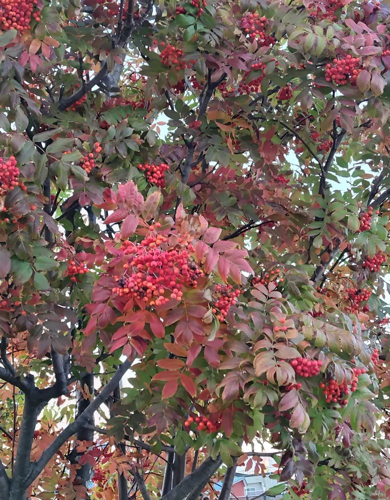 ①②③④去年函館で見たナナカマドの真っ赤な実🌿🔴🔴🌿