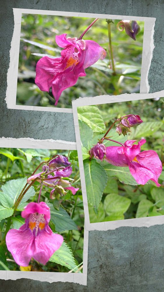 ① ユニークなツリフネソウ、昨年より減りましたが、梅畑の片隅で咲き始めています💗