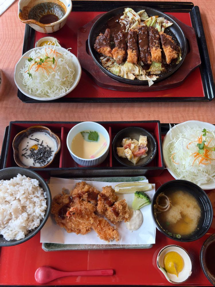 ④今日のランチ。麦ご飯にヒレカツ&海老フライにシジミの味噌汁のセット。シジミといえば、思い出すのが松江が舞台の月曜から始まった朝ドラ『ばけばけ』👻