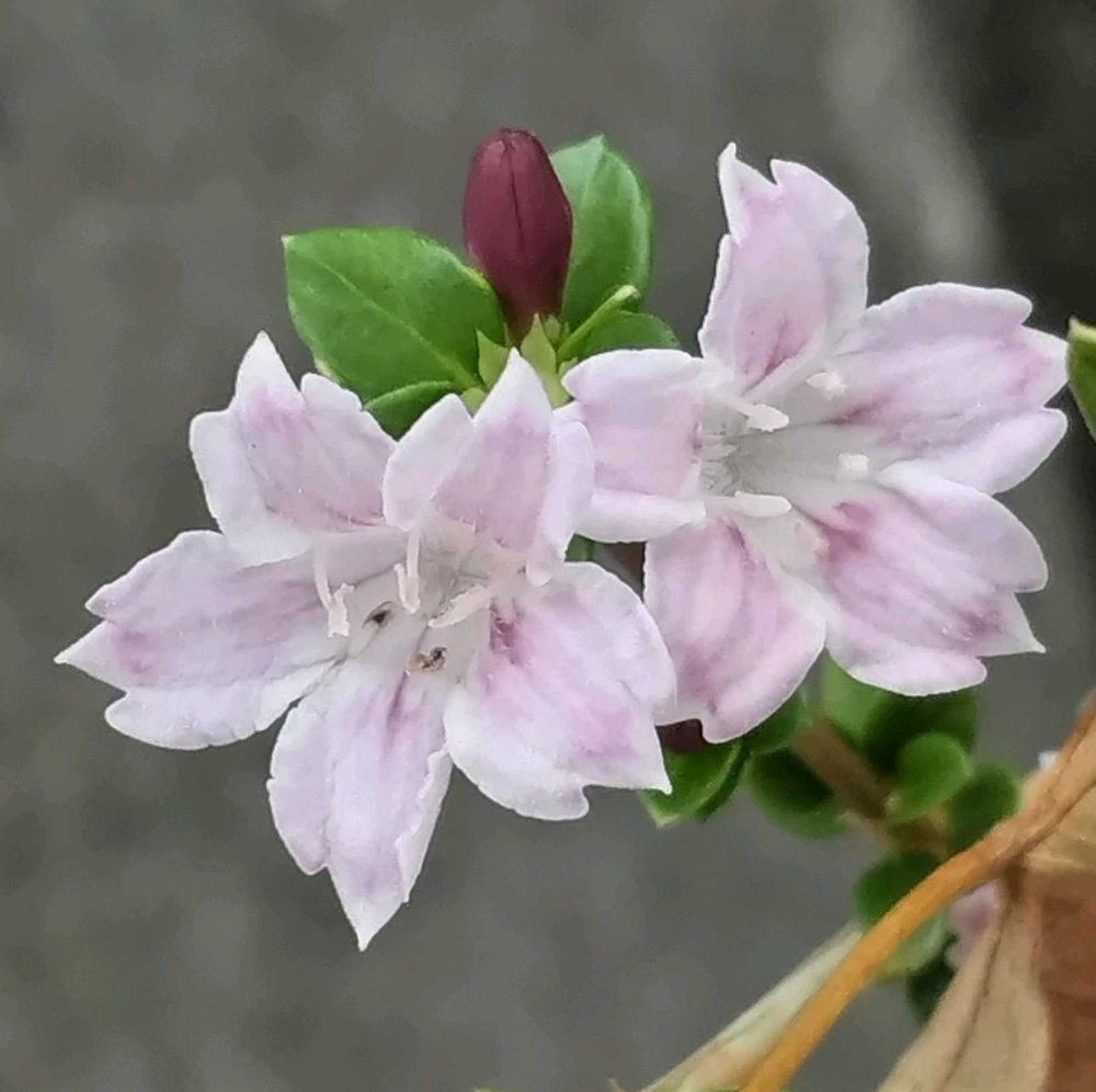 コウ(紅)チョウゲと言うそうですが、今頃ポツリポツリとさいていました💞