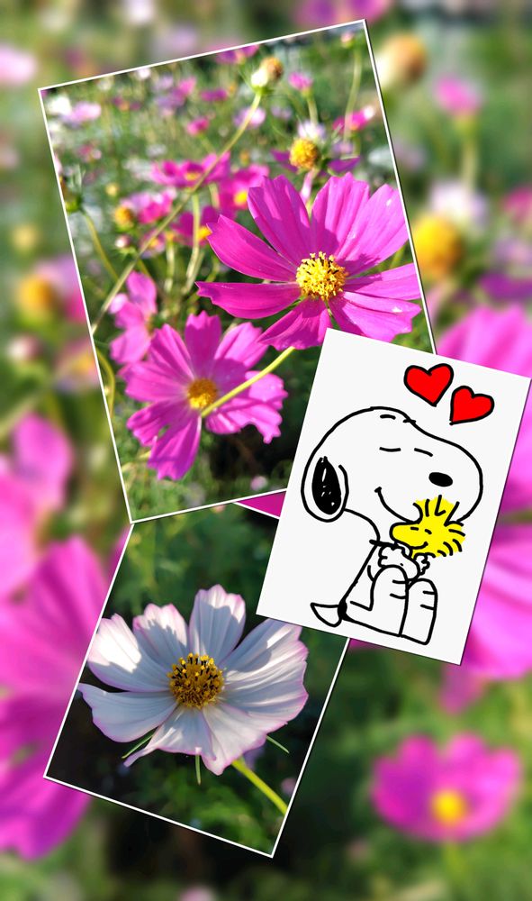 猛暑のせいか勢いないなぁと思っていたのに今日見たらいっぱい咲いていました👏👏 スヌーピーとコラボしました〜💗💗