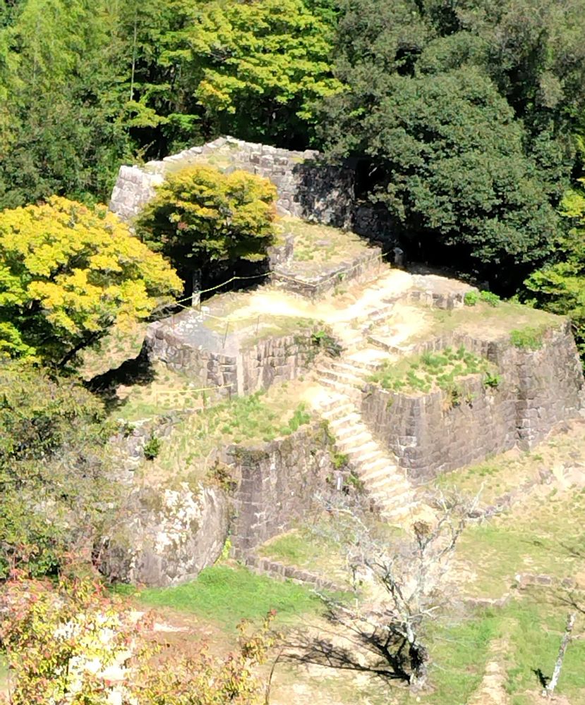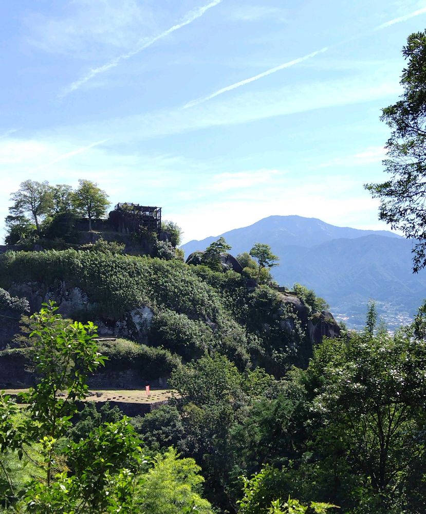 ①山道の途中の足軽長屋から苗木城跡を望む🪨