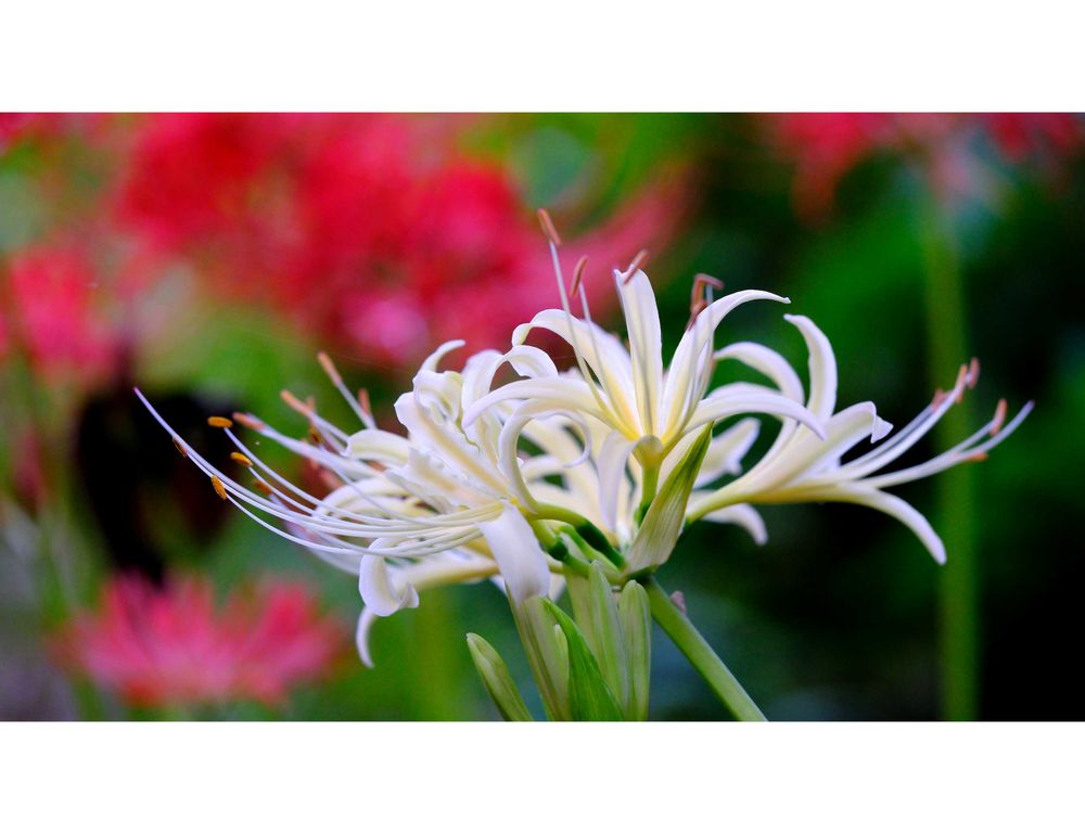 シロバナはショウキズイセン(黄色)とコヒガンバナの交配種とされています。