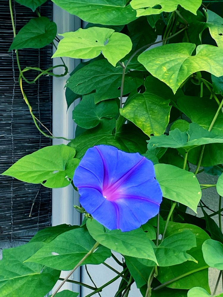 朝顔,朝の散歩道で,通り道のお宅の窓辺にの投稿画像