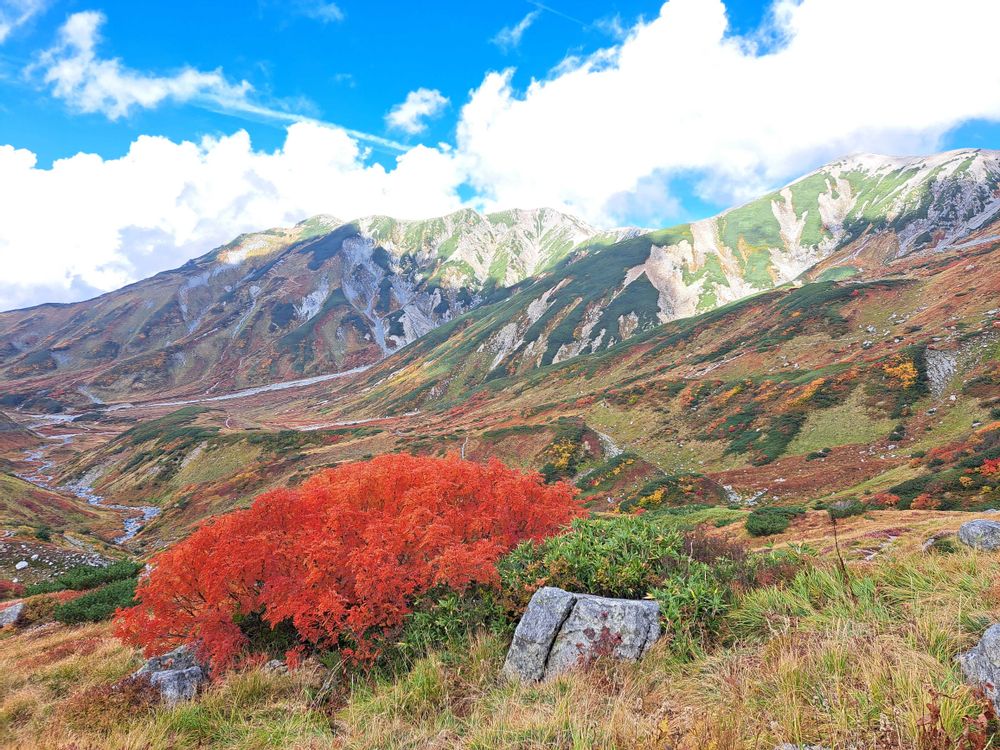 タカネナナカマドも色づき、チングルマも赤くなり、まるで絵画のような風景。