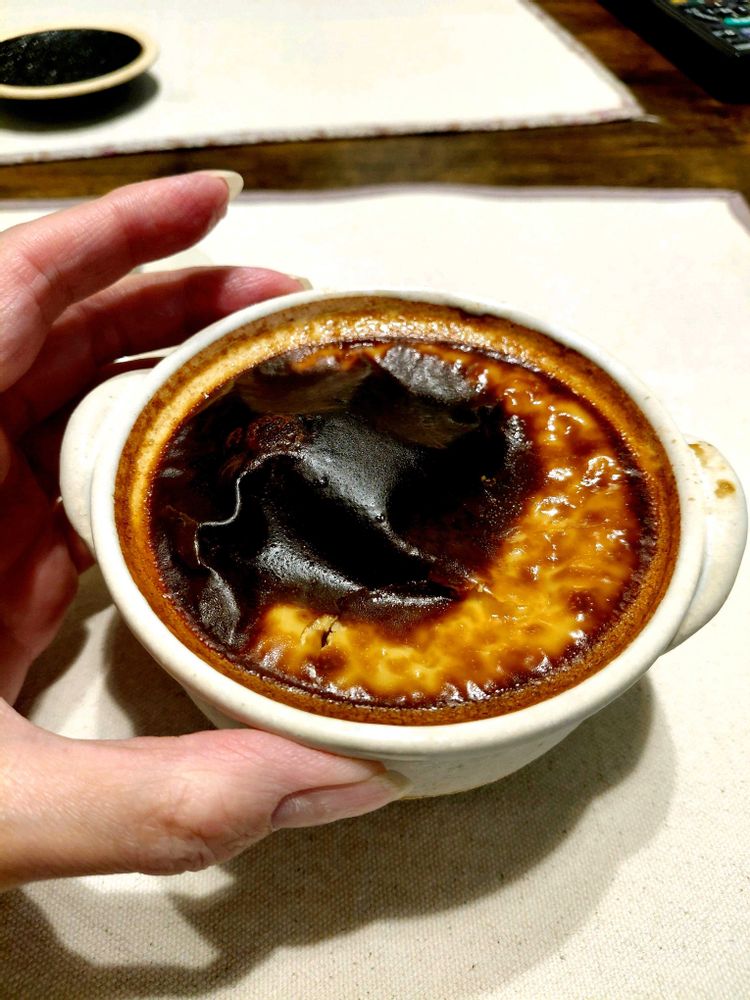 あ、昨日小さな土鍋を使って焼プリンを焼いたのですが、本当はサツマイモ焼プリンを作りたかったのに、ペーストにしたサツマイモを混ぜ込む事をすっかり忘れてしまい、普通の焼プリンにw