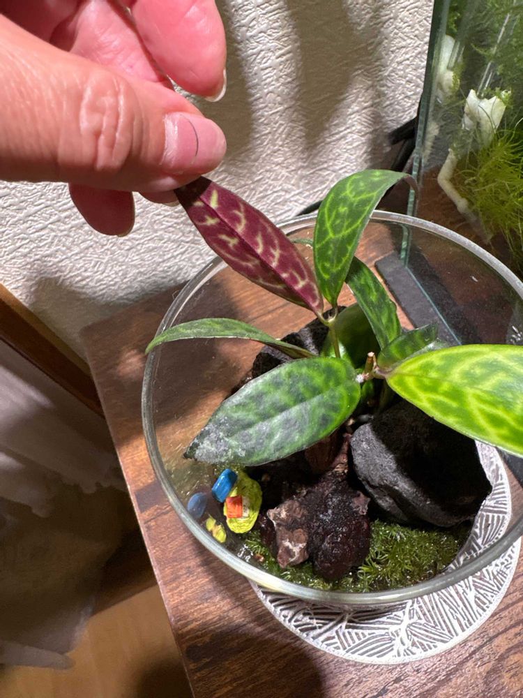 観葉植物で、葉の裏がワイン色