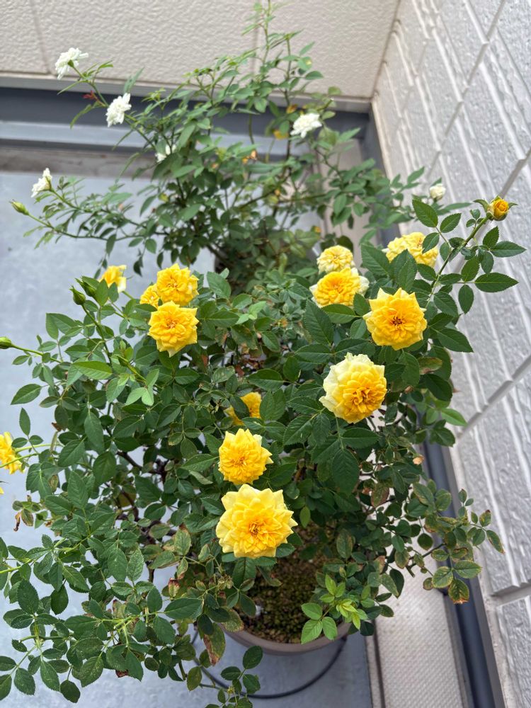 2️⃣黄色のミニバラは、古株ですが元気です♪