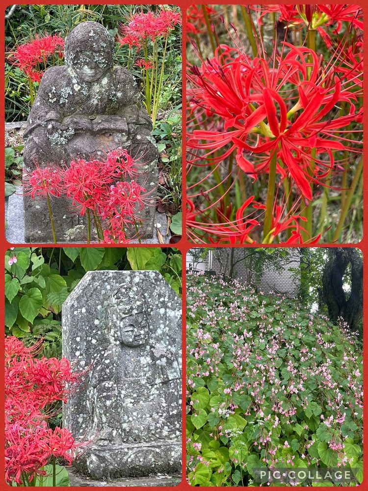 石仏に彼岸花、日本らしい風景ですね💕︎