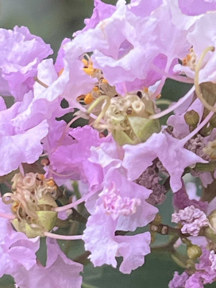 サルスベリ〜ペコちゃんとこの2つとも優しい色で良いなぁ〜💜🤍🩷
