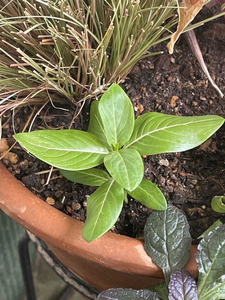 ついに、こぼれ種のニチニチソウが咲きました🤍