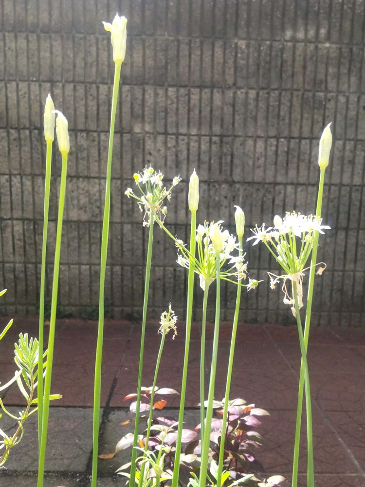ニラの花の蕾って 薄い皮?の中にたくさん包まれているんですね。
