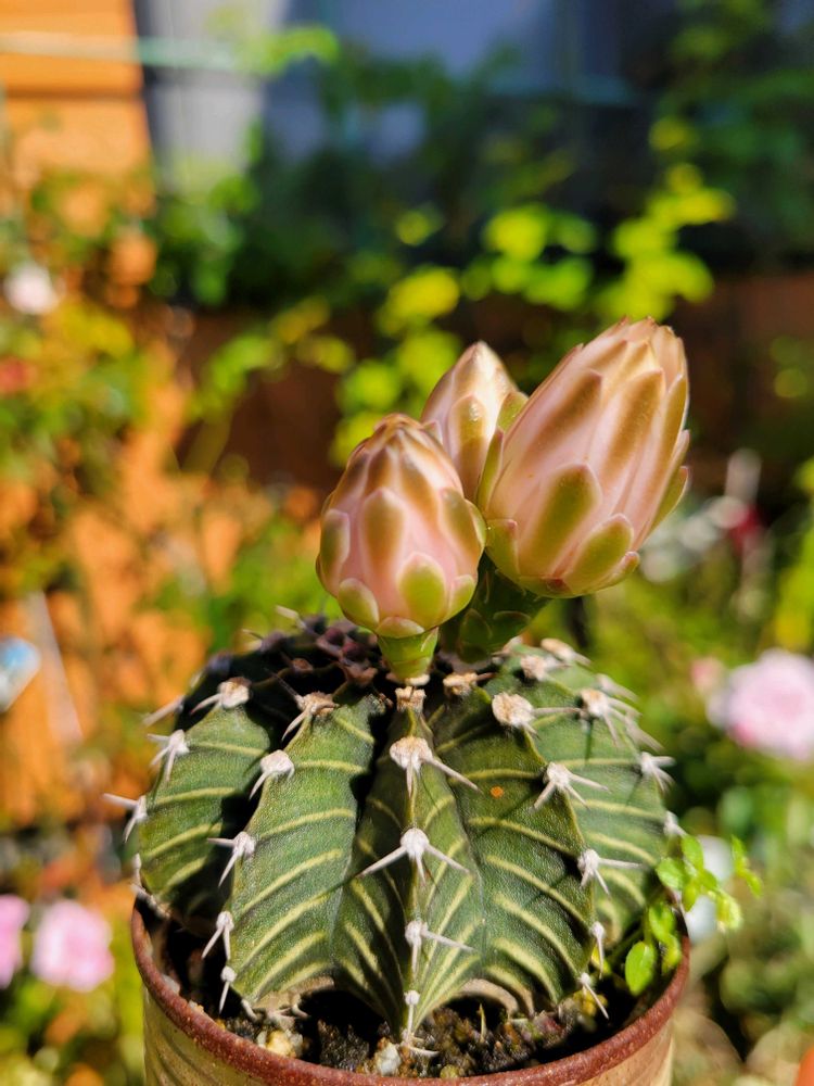 1週間前程に投稿したサボチャンの蕾がもうまもなく開花しそうです😆⤴💓