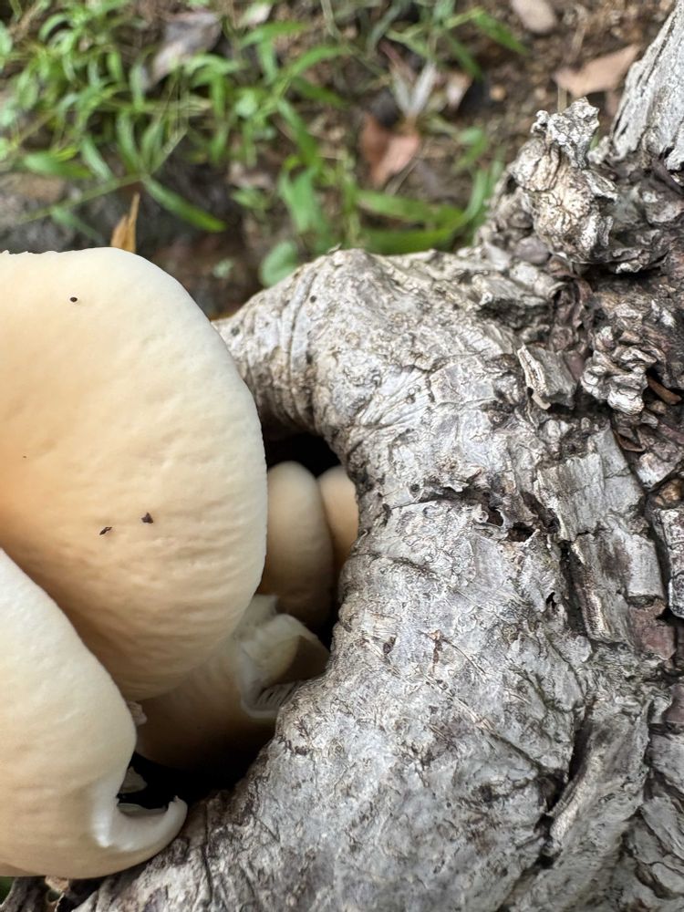 隣の穴にもキノコ🍄🟫奥にも見えます.傘が広がってきてます.
