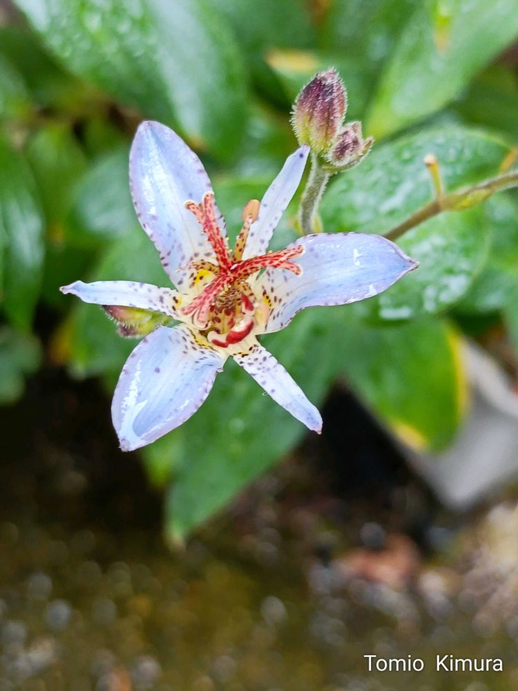 暑さで足踏みをしていた、ホトトギスの一番花が咲きました。