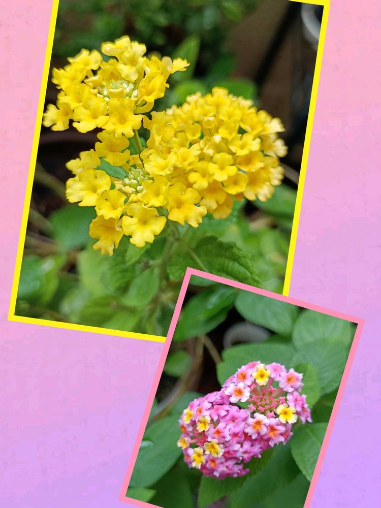 黄色だけのランタナ、こぼれ種アサガオ、ペンタス🌸