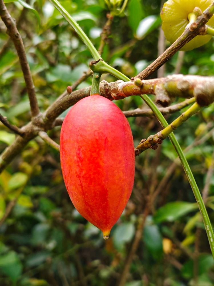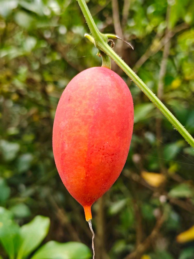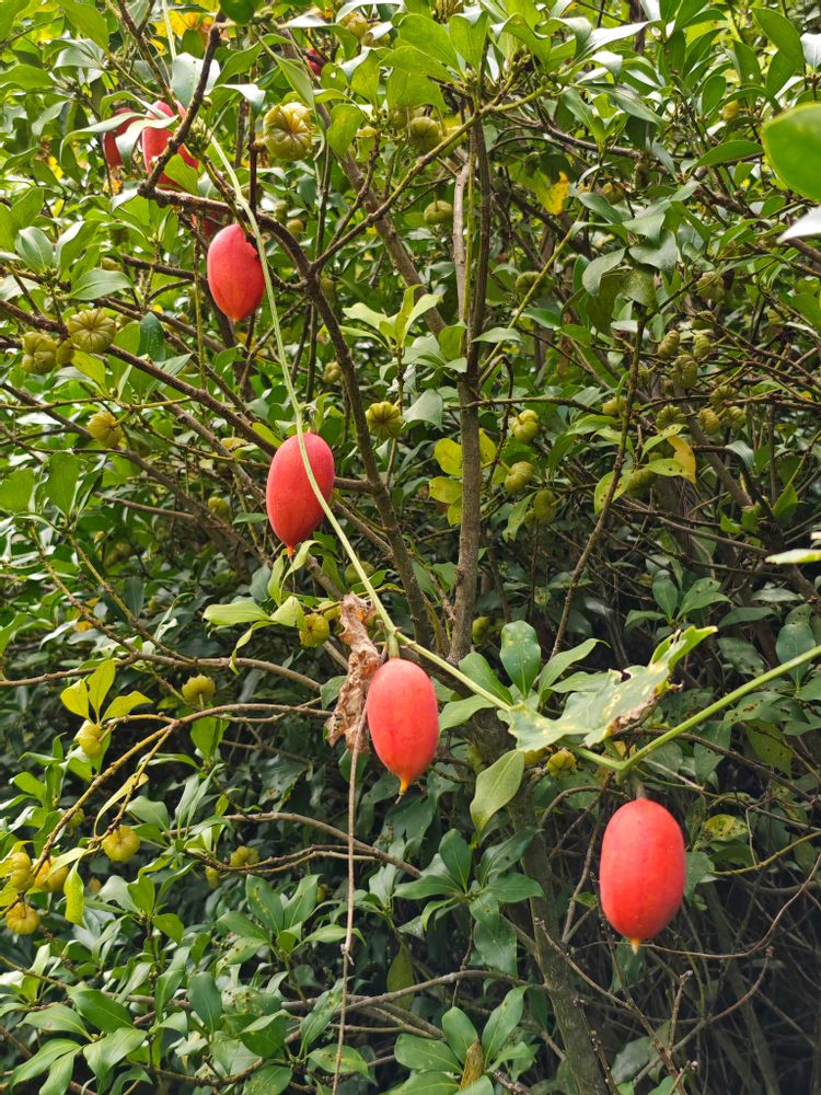 里山の畑の隅に延びていたカラスウリが色づいていました。