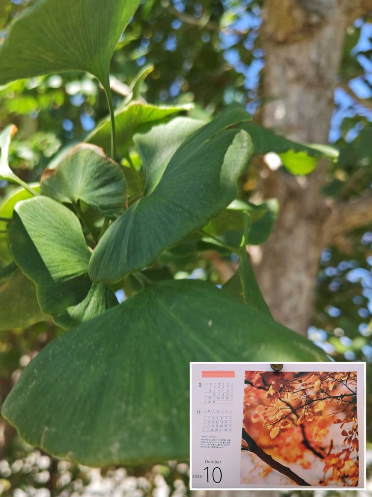 公園のイチョウはまだ青いけど、この某化粧品メーカーのカレンダーの紅葉のように、こんな光景がすぐにやってきます