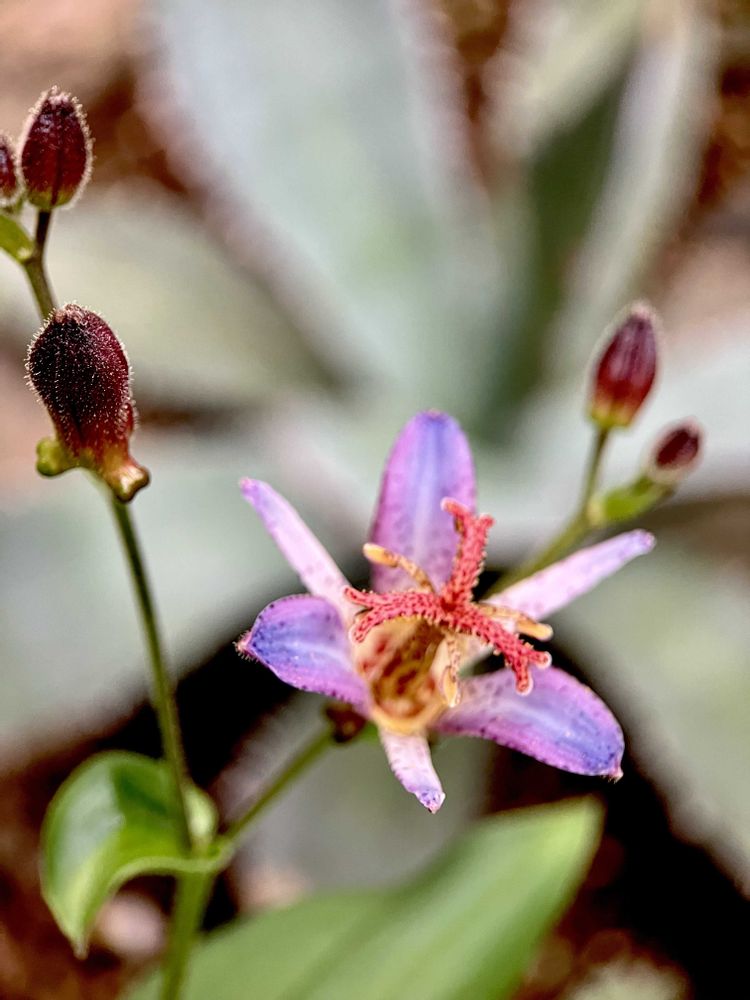 チタノタブルー鉢でホトトギスが咲いてます✋