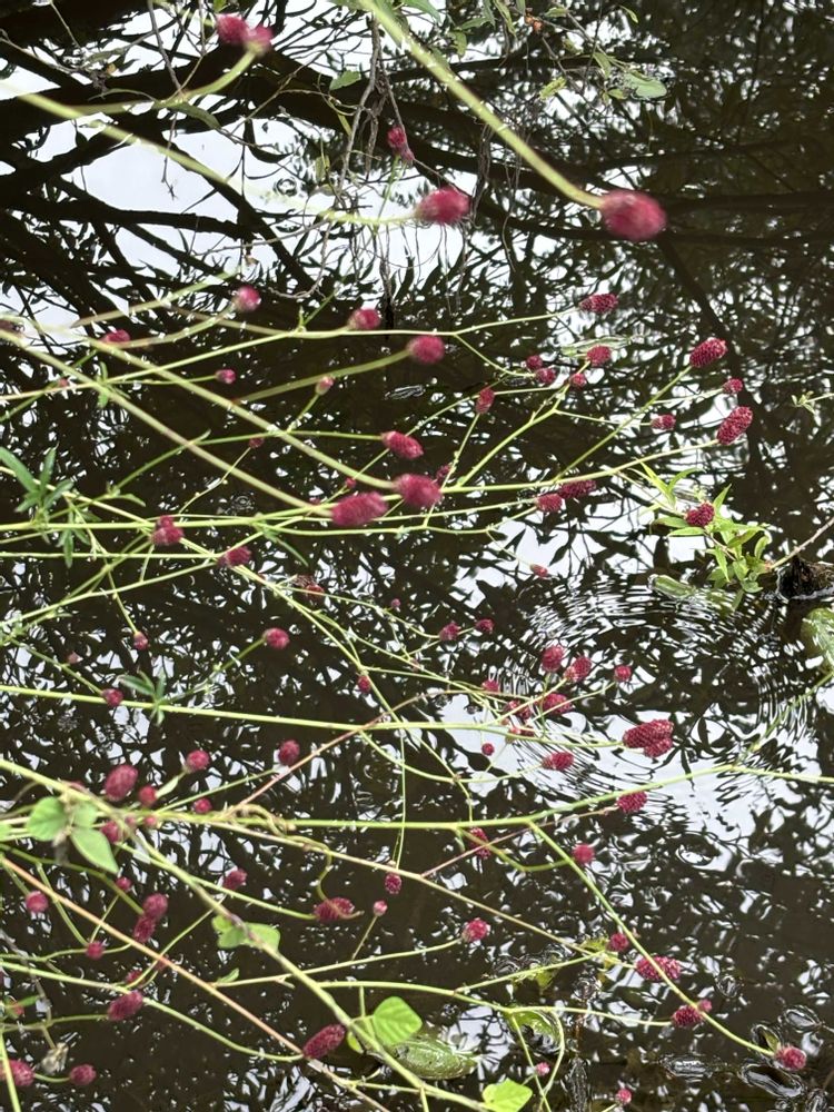 一寸撮るのが大変な花、⑤は水面の上に覆い被さったワレモコウ