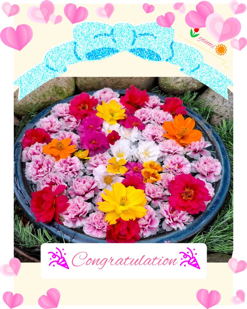 素敵な㊗️pic 花手水イイナァ(*ૣᵕᴗᵕ ૣ*)⌒♡.。