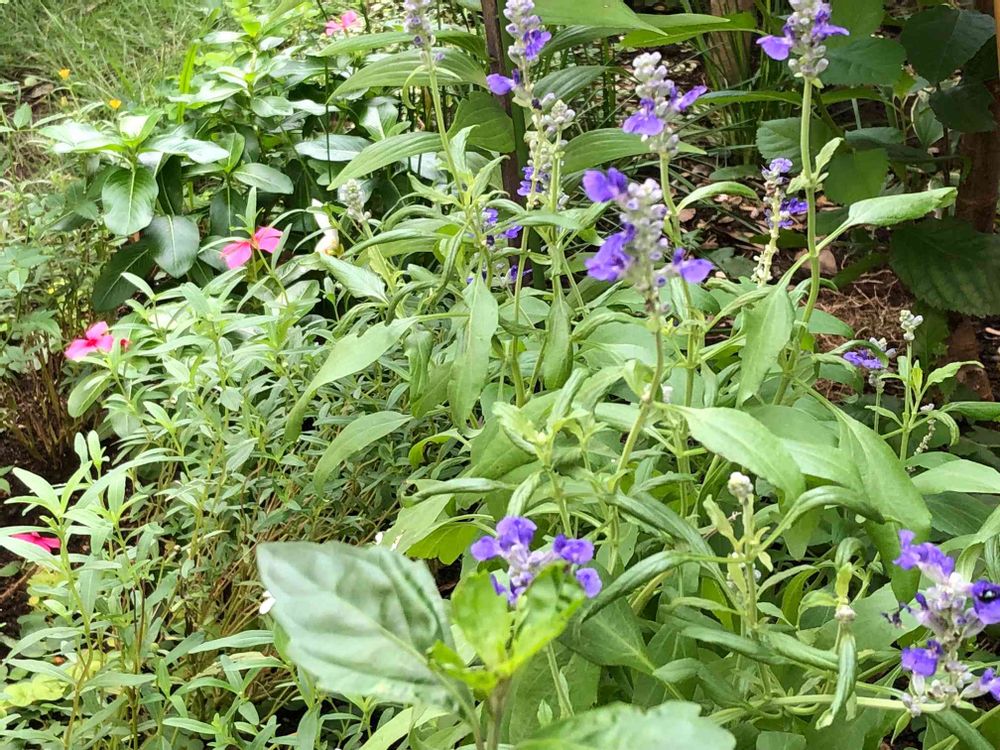 小さな庭,ブルーサルビア,ニチニチソウ ビンカタトゥーの投稿画像