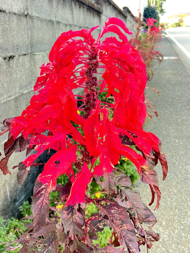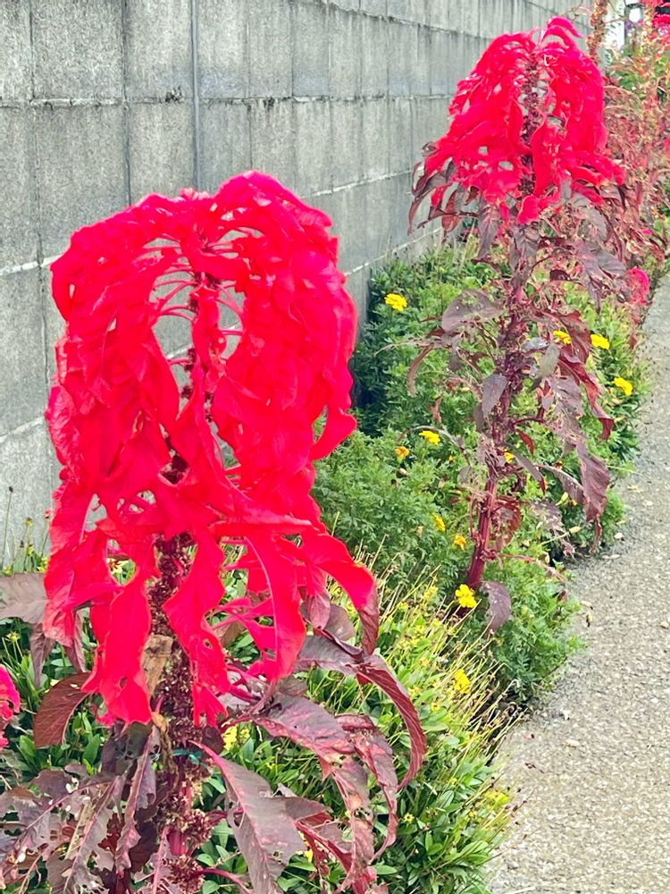 葉鶏頭が鮮やかな赤い葉を広げていました♥️