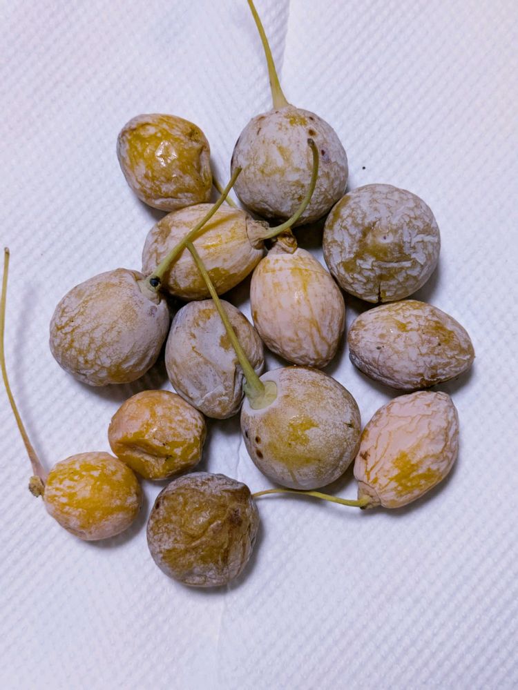 エプロン(割烹着)着けたままで、近くの📮へ行く途中で落ちてた銀杏を拾って(どうしようかな~)エプロンのポケットに入れて持ち帰り